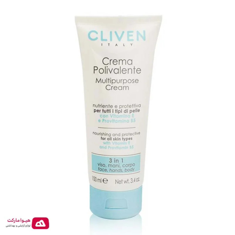 کرم چند منظوره کلیون Cliven crema polivalente حاوی روغنها و عناصر طبیعی مانند روغن بادام شیرین ، ویتامین E و پروویتامین B5 بوده، ضمن آبرسانی و مرطوب ساختن پوست در افزایش نرمی و لطافت آن تاثیر مثبتی دارد و به تغذیه موثر بافت پوست کمک میکند.